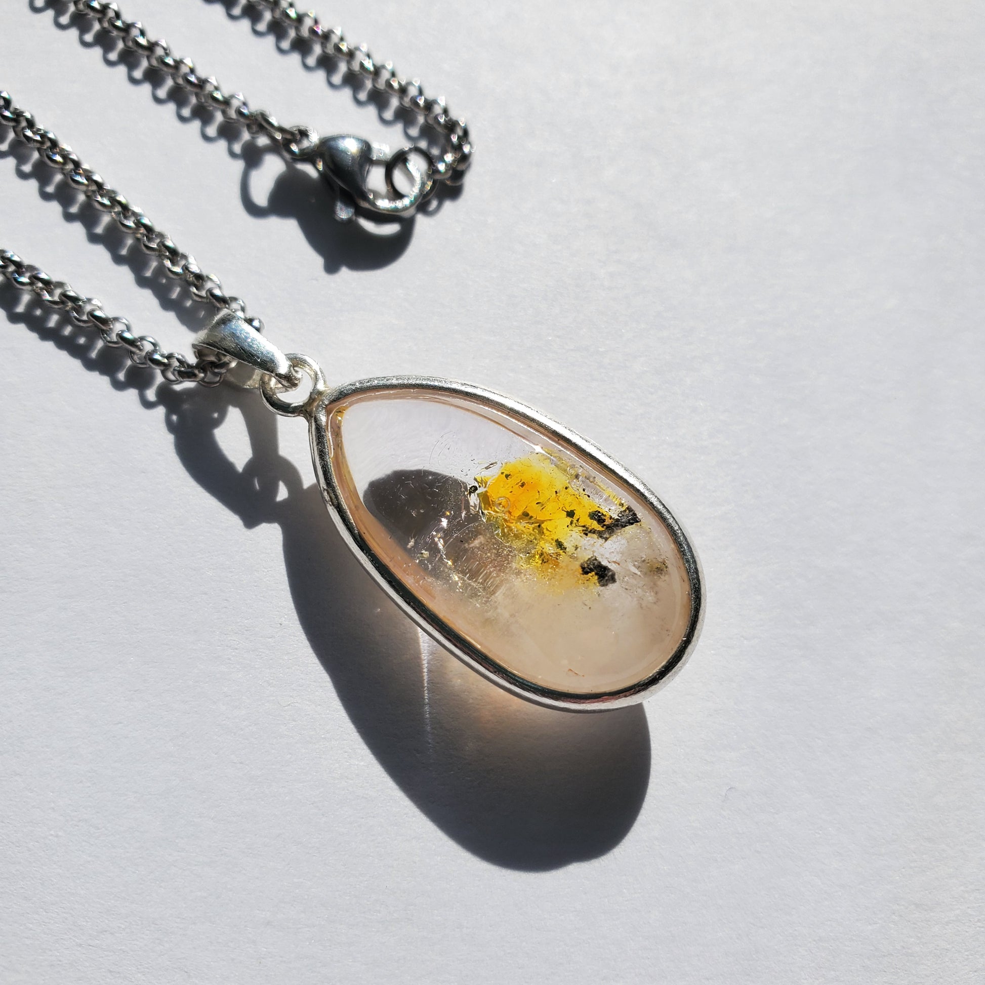 Set in 990 Silver and strung on an 27" stainless steel necklace