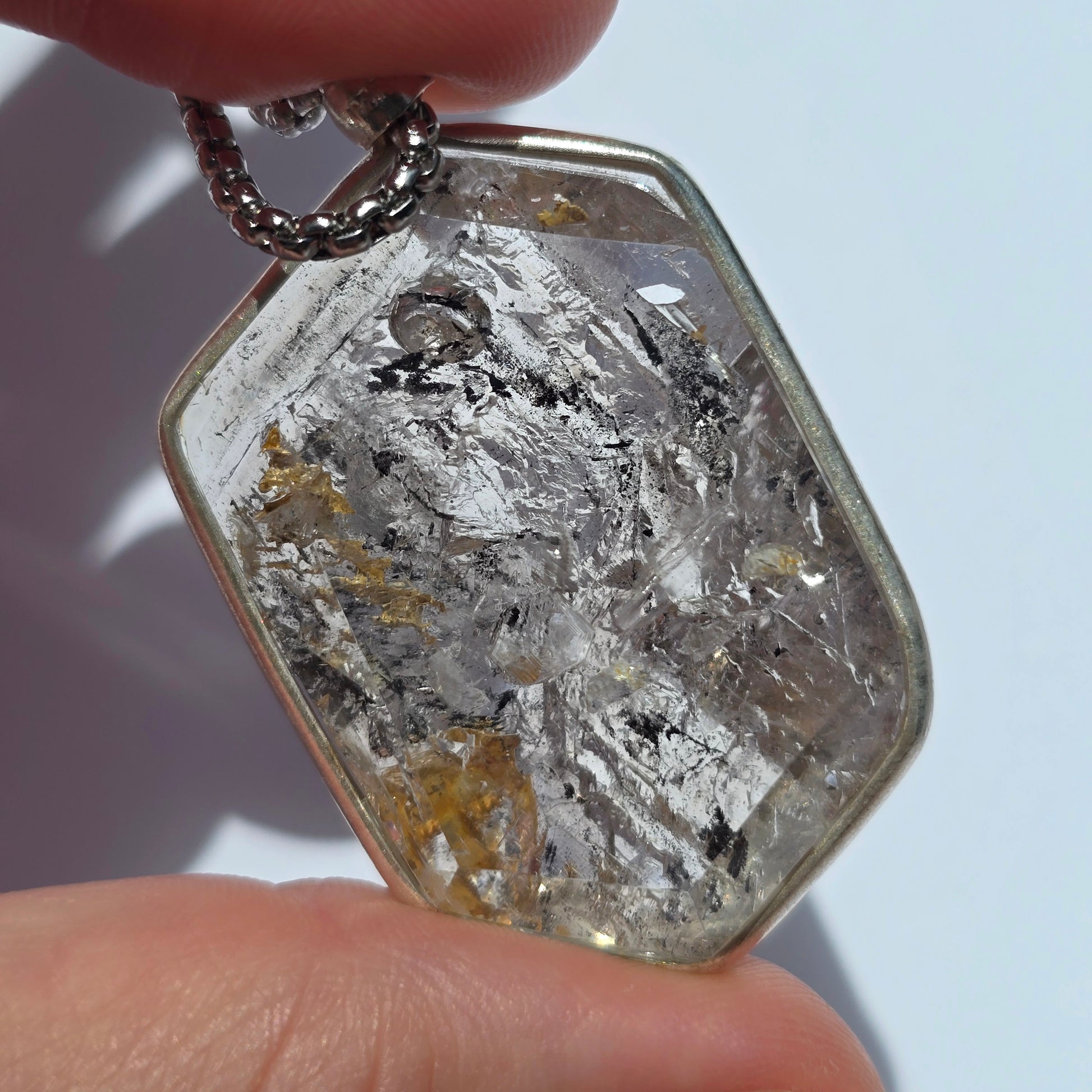 Carbon Included Enhydro Crystal Pendant